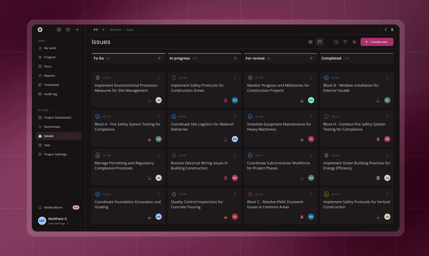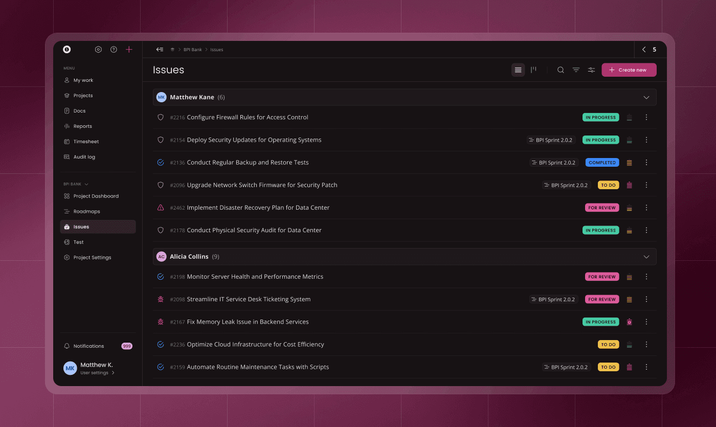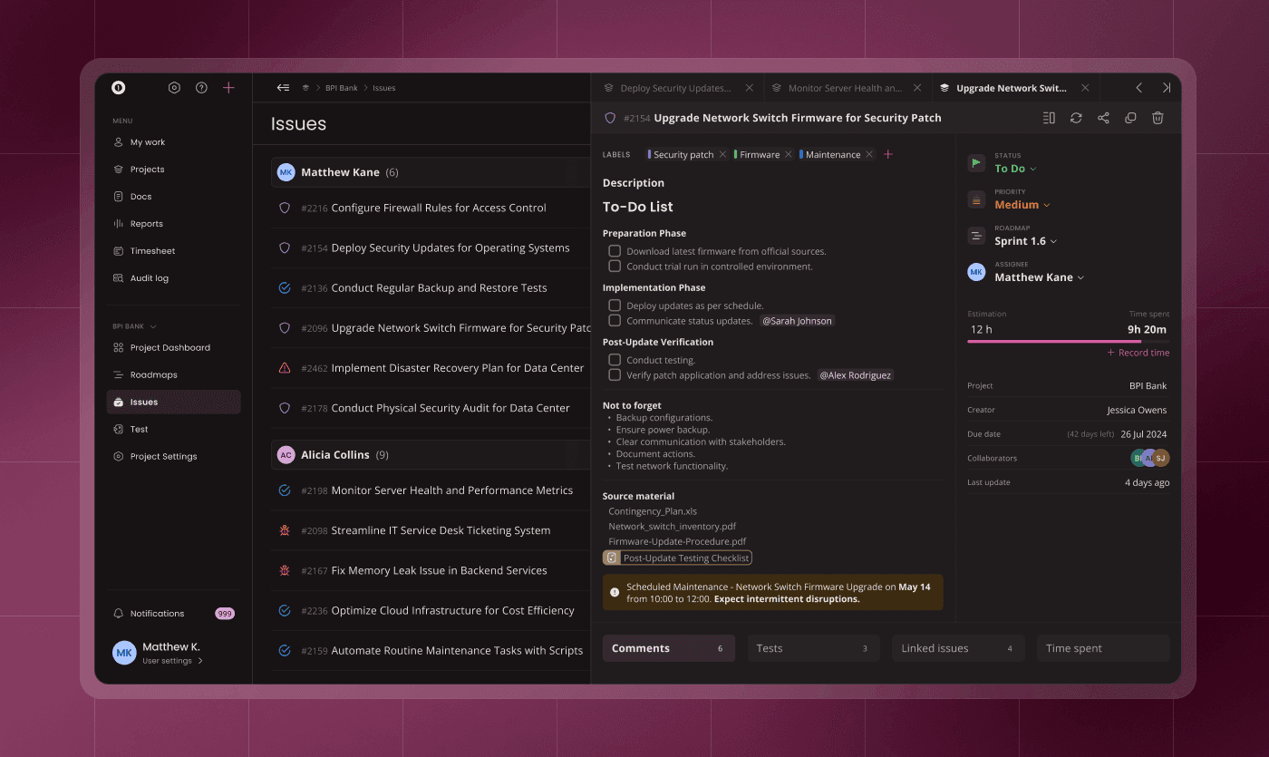 The Issue Management module in juno.one is the backbone of the entire platform, connecting tasks, time tracking, documentation, and planning.