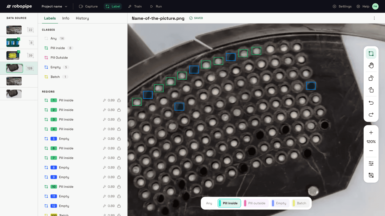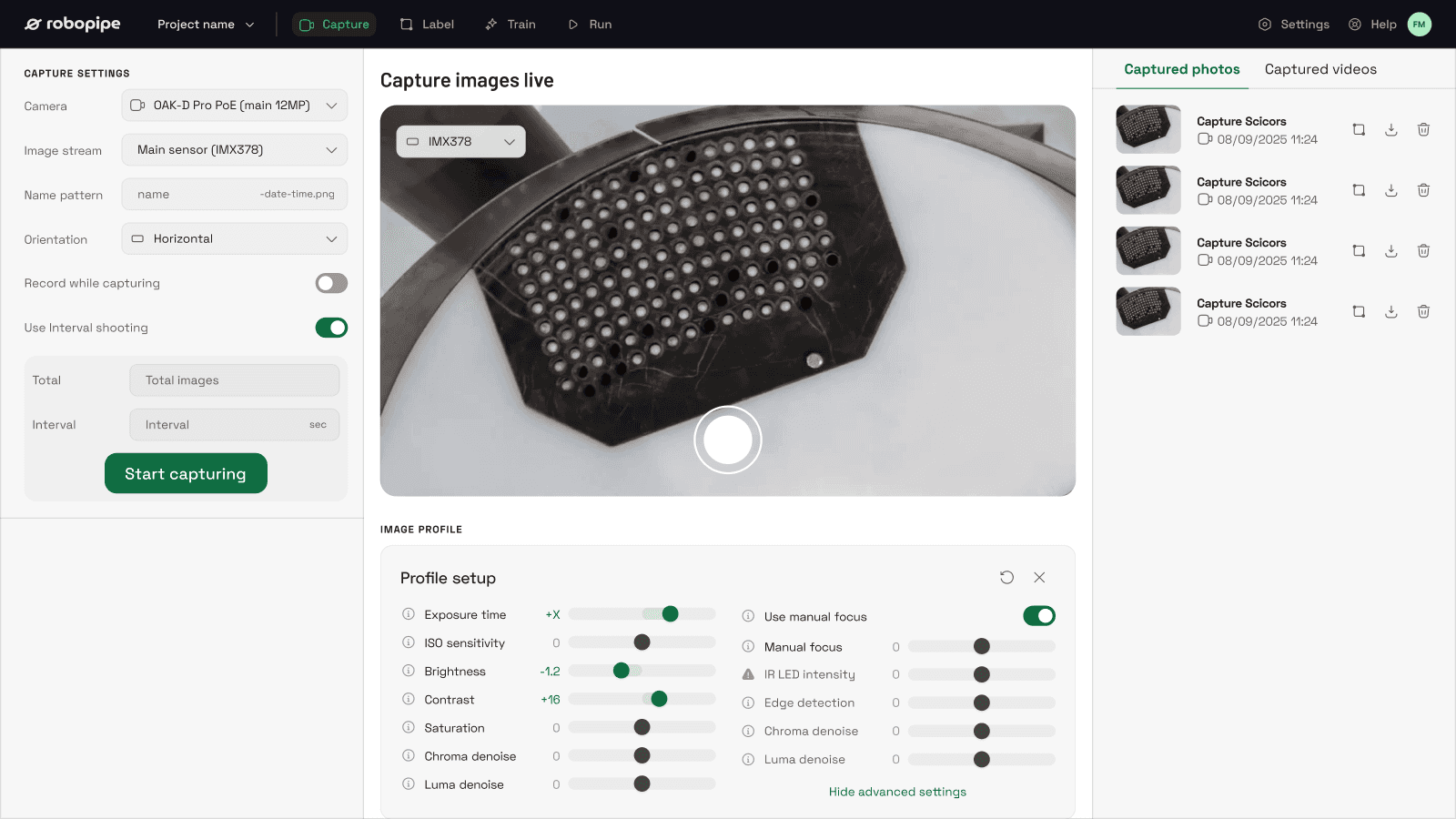A key capability of Robopipe is the ability to capture training data directly from the industrial camera.