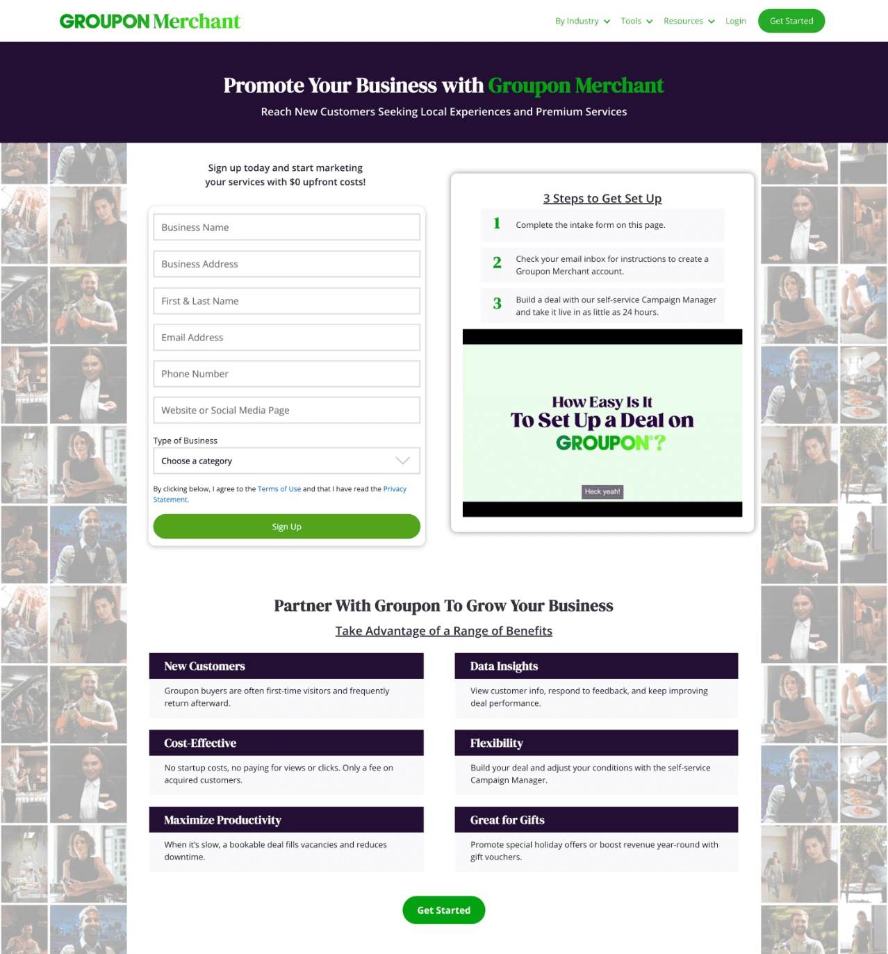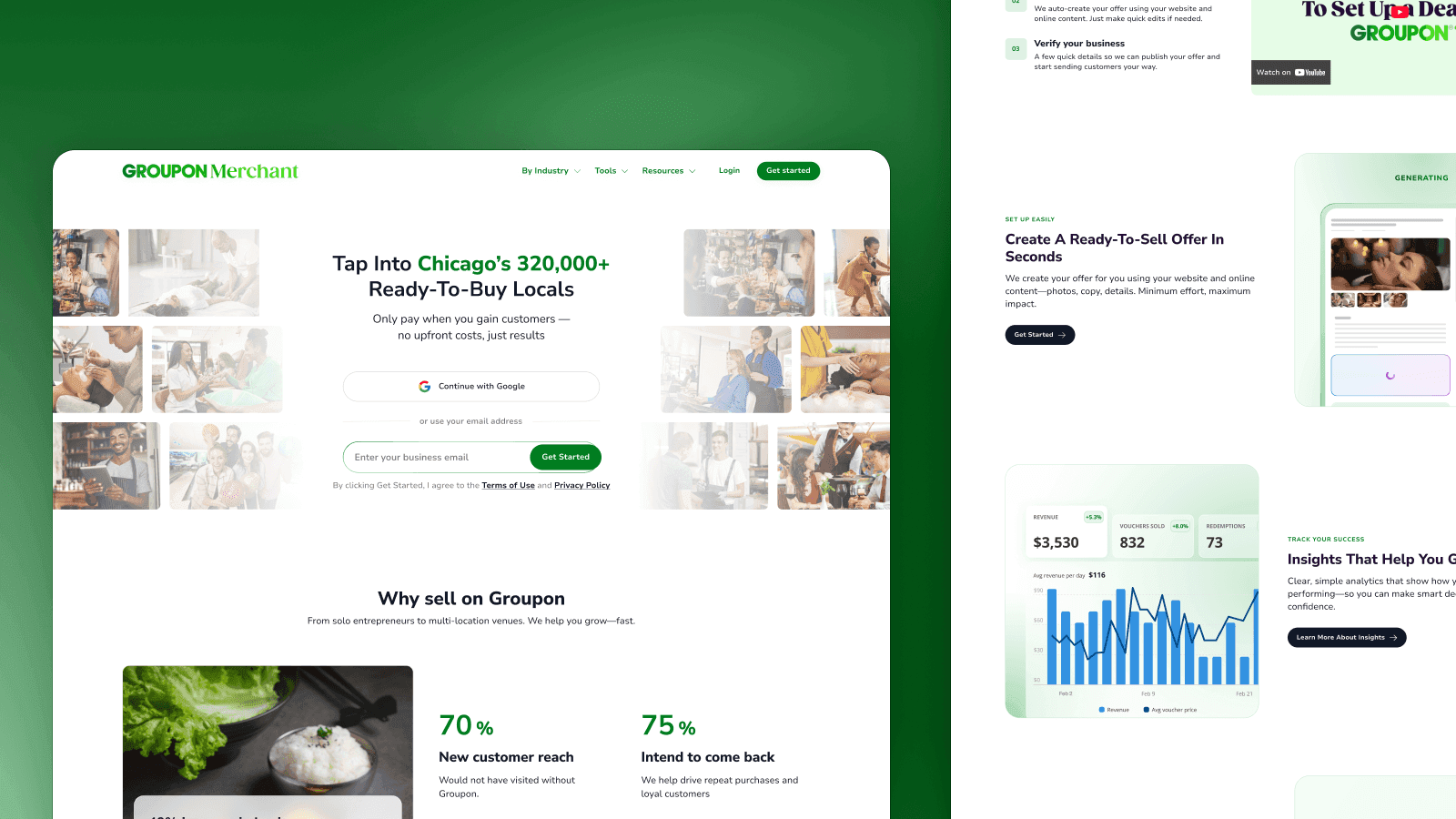 Groupon’s merchant acquisition landing page is the main entry point for businesses interested in selling on the platform. The page attracts hundreds of thousands of visitors annually, yet conversion rates had stagnated.