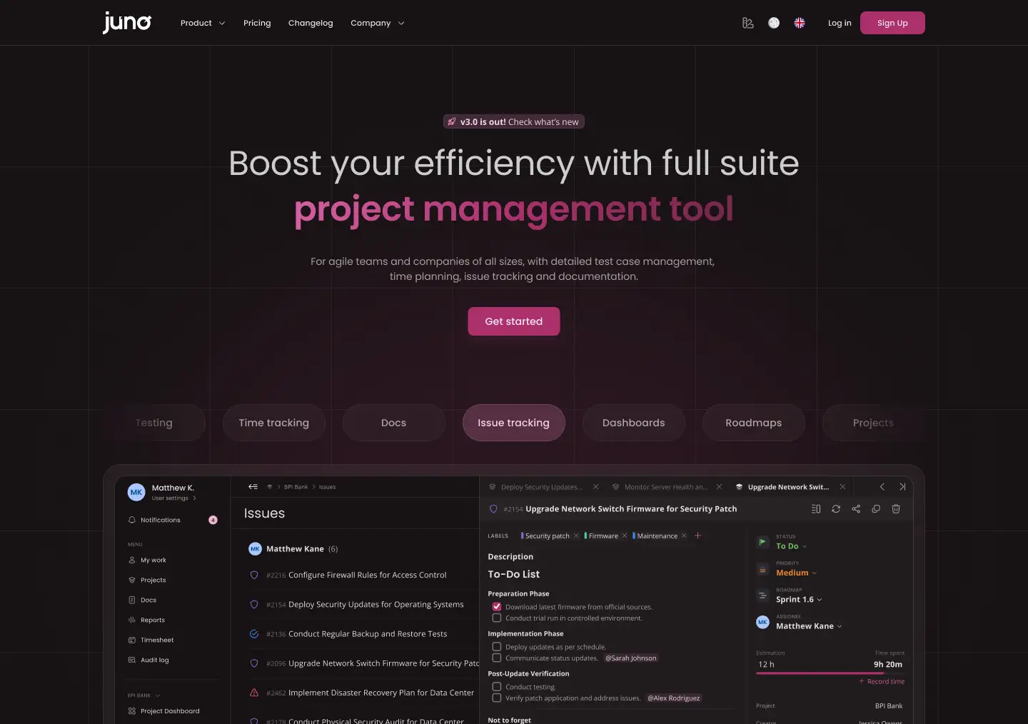 juno.one is a project and test management platform designed for software teams that need structured workflows, integrated testing, and traceability across development cycles.